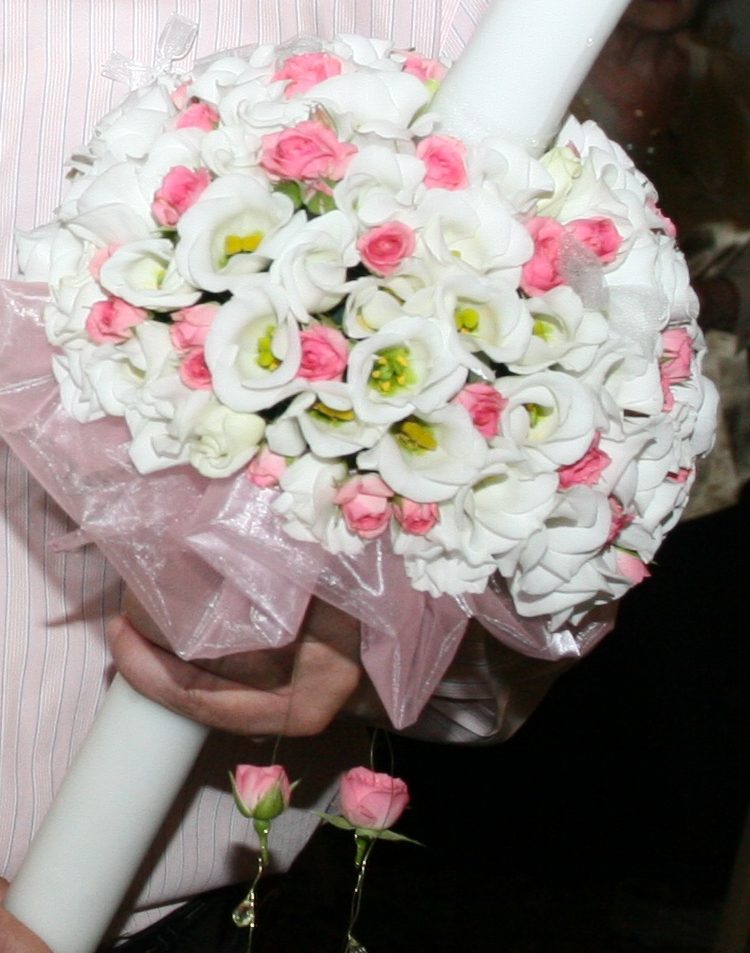 aranjamente specifice crestinarii copiilor, si anume lumanari impodobite cu flori si aranjamente cristelnita